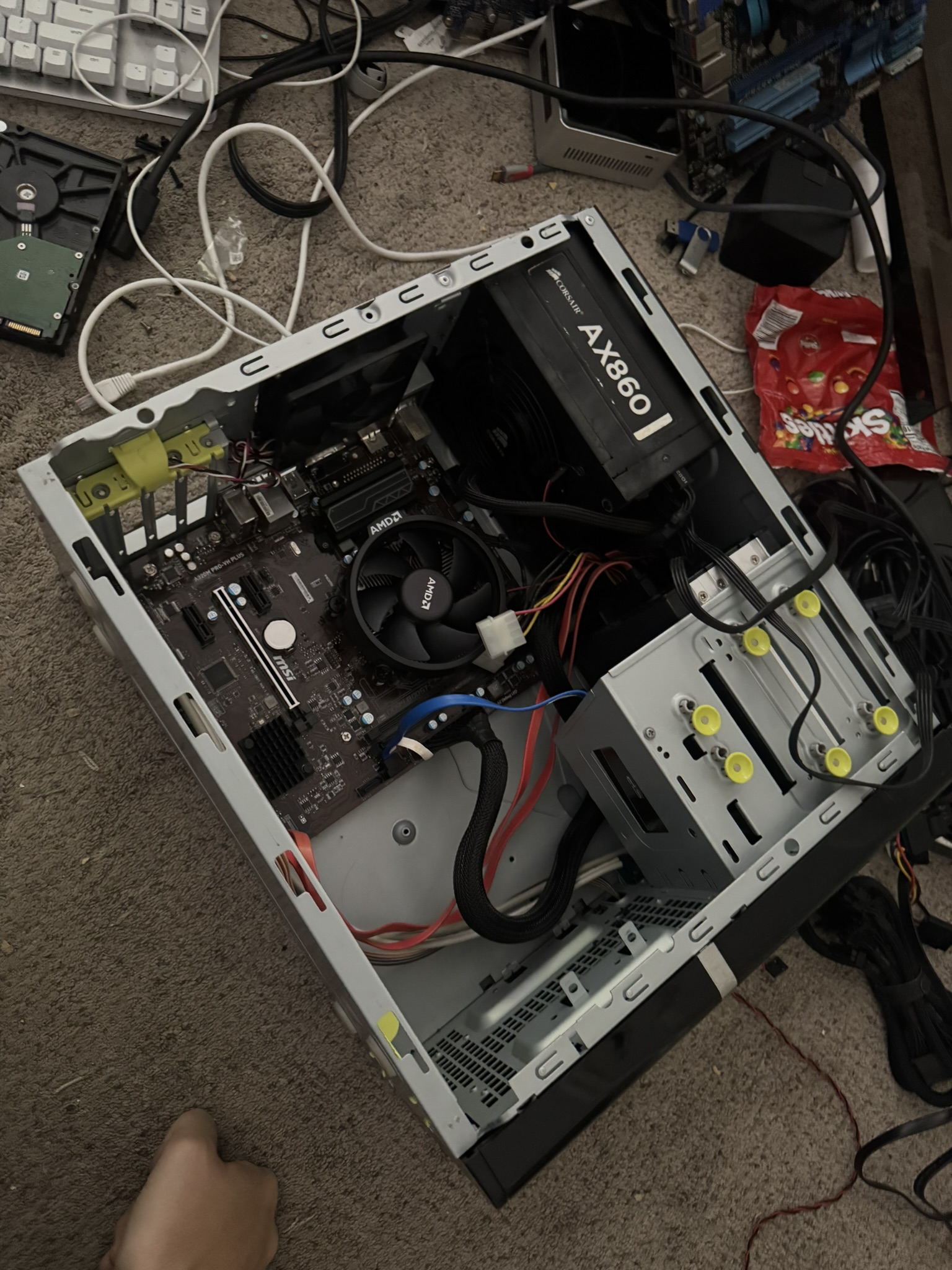 - notes: i built poppynas partially out of my first desktop computer, and partially out of parts i literally found on the side of the road :3 the case, drive bays, one of the drives i think, power supply, and several cables all came from the curb in my neighborhood, and everything else was canibalized from the first pc i bought when i was like 12. given its state, it works pretty well 4 what i need it 2 do, minus the fact that the drive bay fans dont work and it can get a little toasty. ill replace them at some point but theyre a weird size and i cant find any for what im willing 2 spend <3